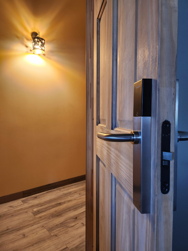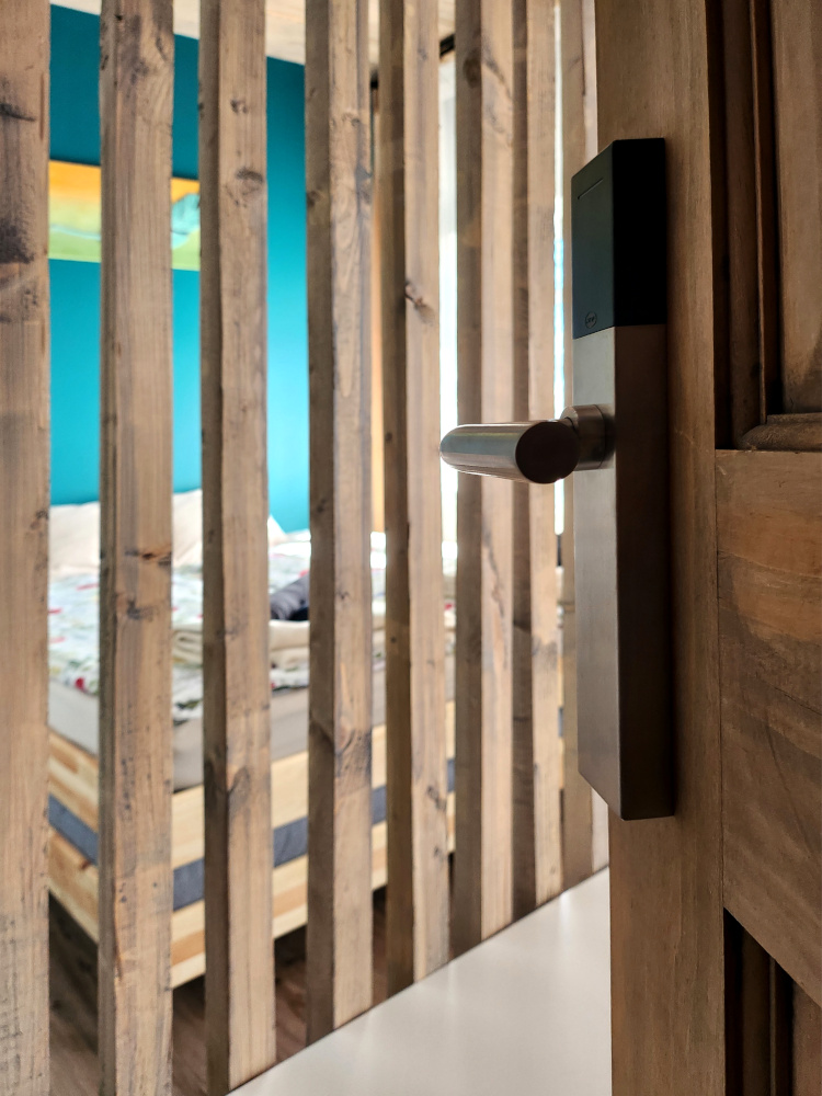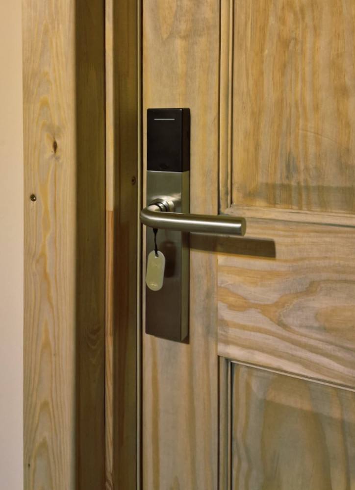 Viesu nama saimniece jau sākotnēji apsvēra iespēju aprīkot objektu ar viedās piekļuves sistēmām, taču tobrīd izmaksu dēļ tika izvēlēti klasiskie risinājumi ar vienkāršiem, privātai lietošanai paredzētiem slēgšanas cilindriem.