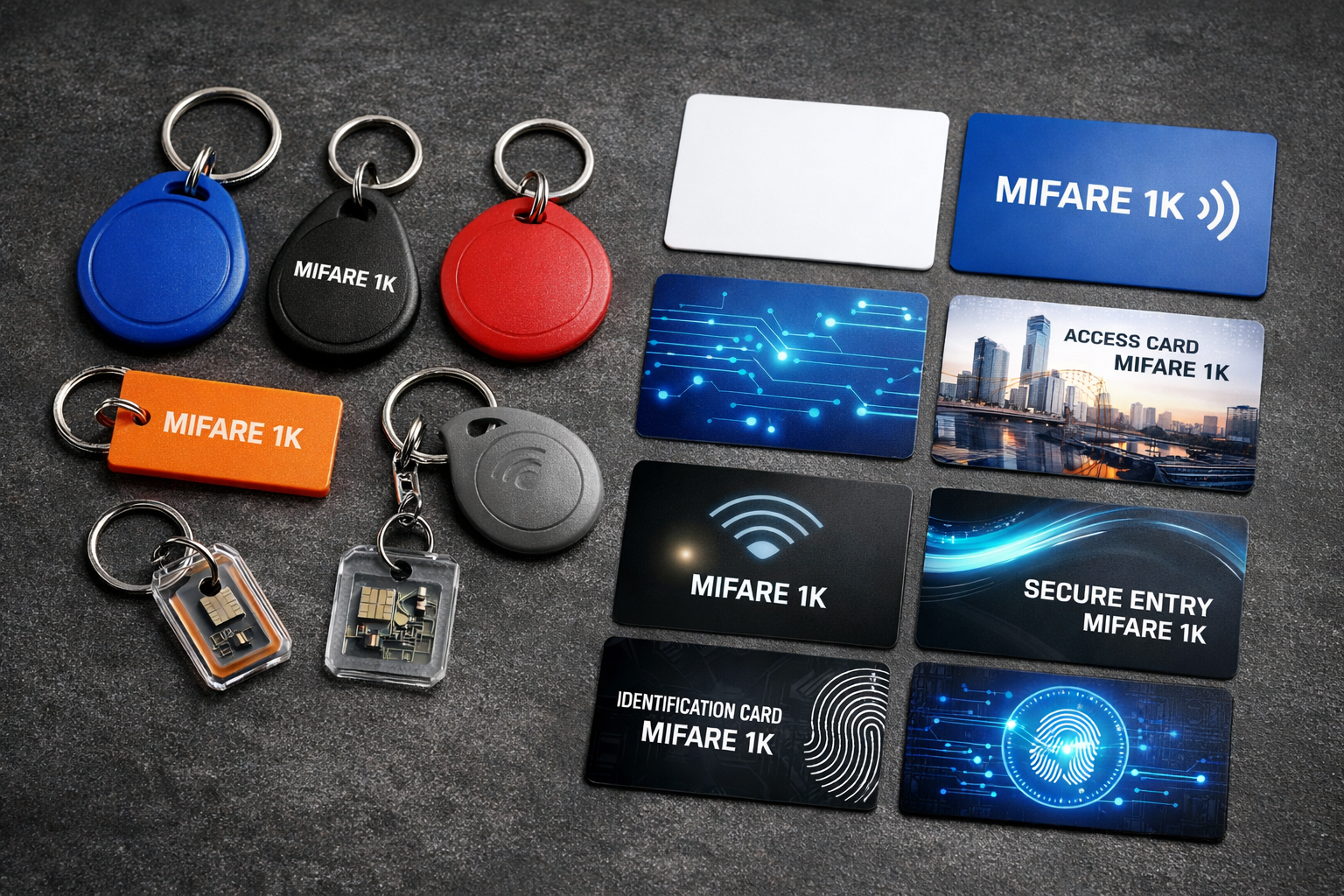 MIFARE 1K (13,56 MHz) ir plaši izmantots bezkontakta RFID risinājums piekļuves kontroles sistēmās. Tas darbojas augstfrekvences (HF) joslā un atbilst ISO/IEC 14443 A standartam. Šī tehnoloģija nodrošina ātru un stabilu lietotāju identifikāciju nelielā attālumā, parasti līdz 10 cm no lasītāja.