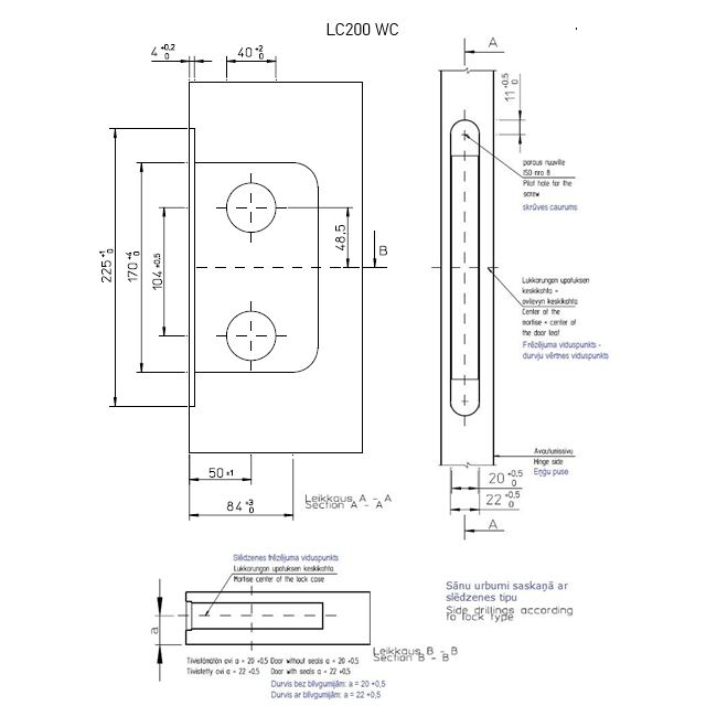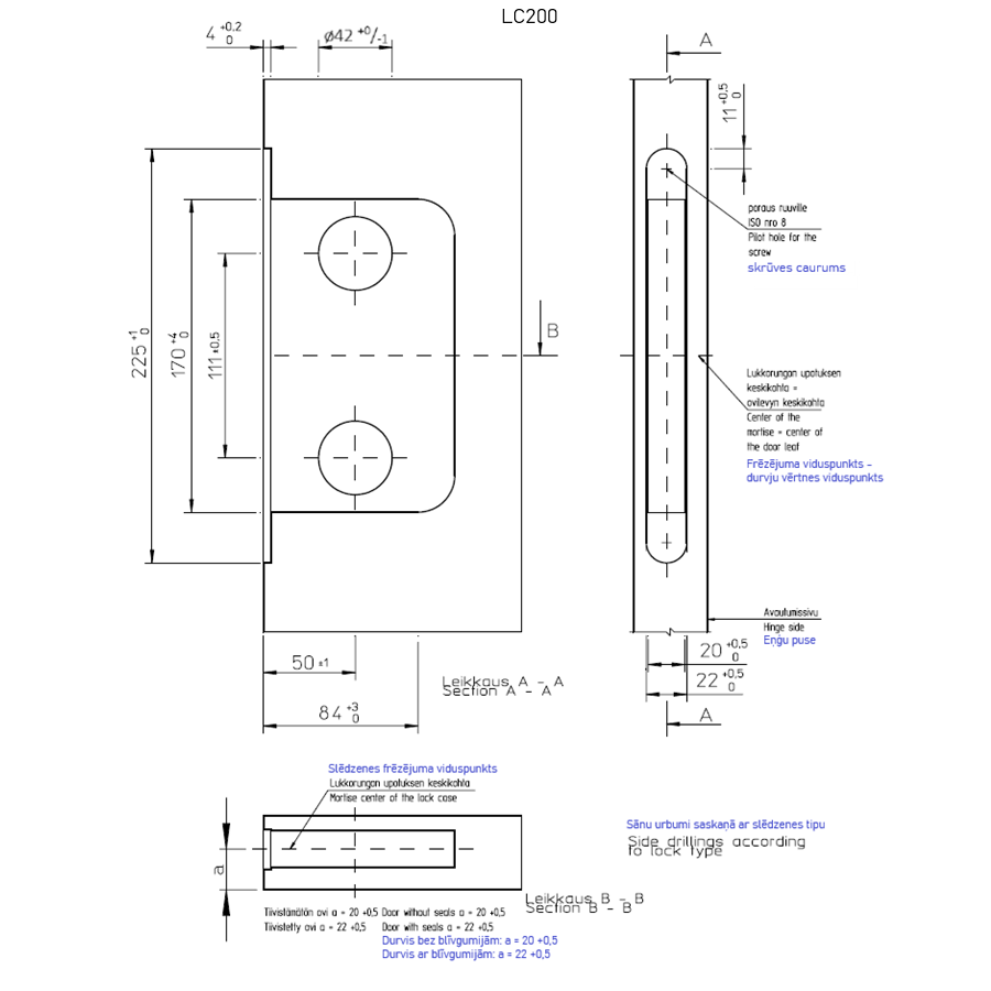 | Slēdzenes tips | Vienpunktu slēdzene veramām durvīm |